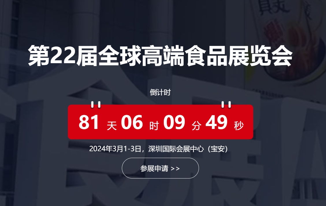 第22屆全球高端食品展覽會、中國糖果零食展(全食展),將于2024年3月1-3日,深圳國際會展中心(寶安)舉行。本屆展會,由中國副食流通協(xié)會支持,北京龍品錫展覽有限公司主辦,深圳龍品錫展覽有限公司承辦。規(guī)劃展出面積15萬平米,預(yù)計參展企業(yè)2200余家,專業(yè)觀眾18萬人次。